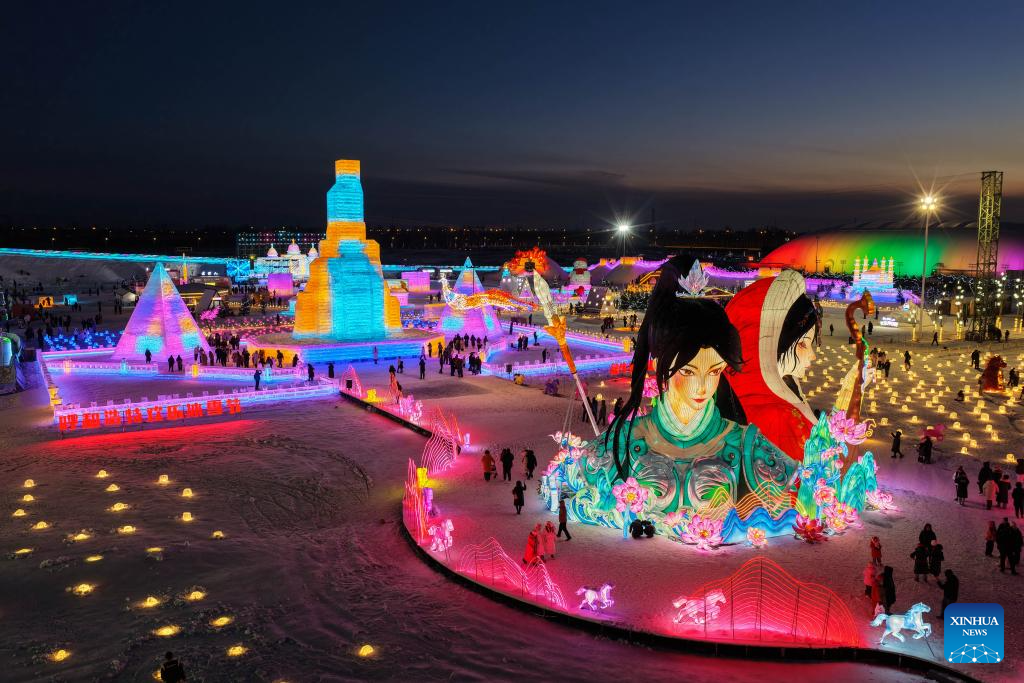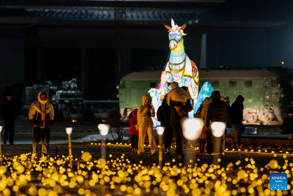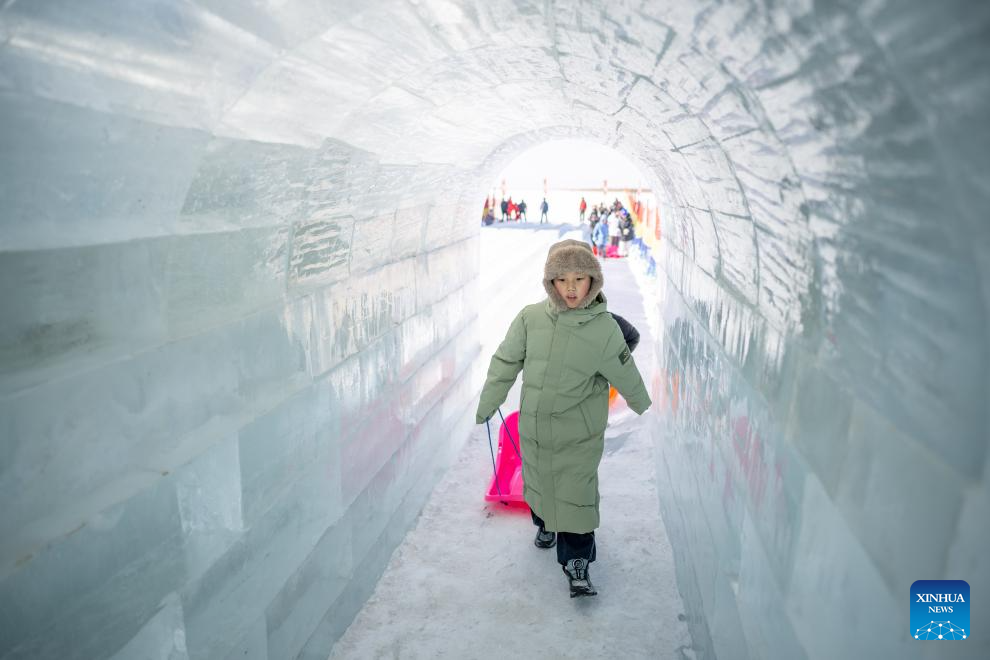 This photo taken on Dec. 31, 2025 shows people attending an ice and snow festival in Hohhot, north China's Inner Mongolia Autonomous Region. Hohhot has launched more than 300 winter amusement programs since December 2025, incorporating ice and snow sports, cultural experiences and vogue consumption to boost the local economy. (Xinhua/Lian Zhen)