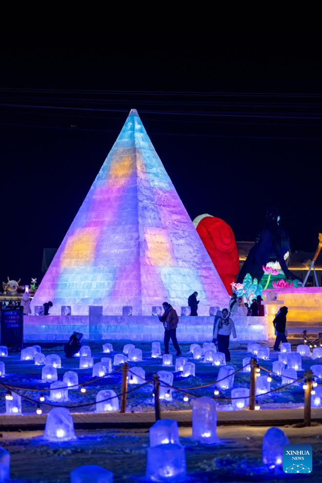 This photo taken on Dec. 31, 2025 shows people attending an ice and snow festival in Hohhot, north China's Inner Mongolia Autonomous Region. Hohhot has launched more than 300 winter amusement programs since December 2025, incorporating ice and snow sports, cultural experiences and vogue consumption to boost the local economy. (Photo by Xu Ting/Xinhua)
