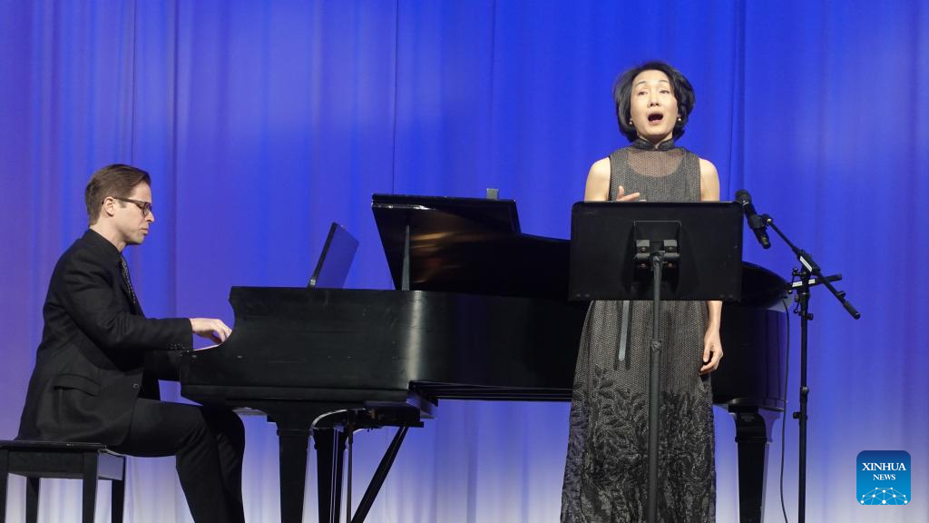 Soprano Qiu Shuwei from the Shanghai Conservatory of Music and U.S. pianist Zachary Deak performed art songs in four languages -- Chinese, English, French and Italian. Above the stage, a multimedia screen displayed Wu's expressive ink paintings, infusing the music with a distinctive Eastern aesthetic.