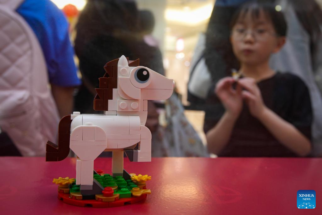 People build Chinese New Year-themed LEGO models during a LEGO pop-up event to celebrate the upcoming Year of the Horse at Metrotown Shopping Mall in Burnaby, British Columbia, Canada, on Feb. 8, 2026. (Photo by Liang Sen/Xinhua)