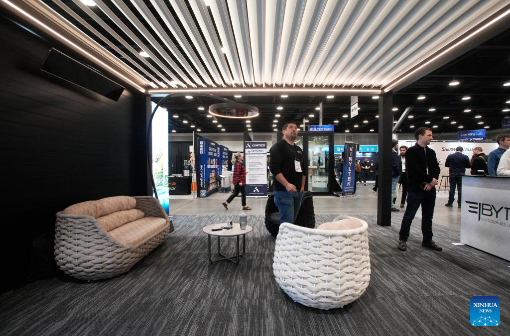 An outdoor roof system is displayed at the BUILDEX 2026 trade show at the Vancouver Convention Center in Vancouver, British Columbia, Canada, on Feb. 11, 2026.