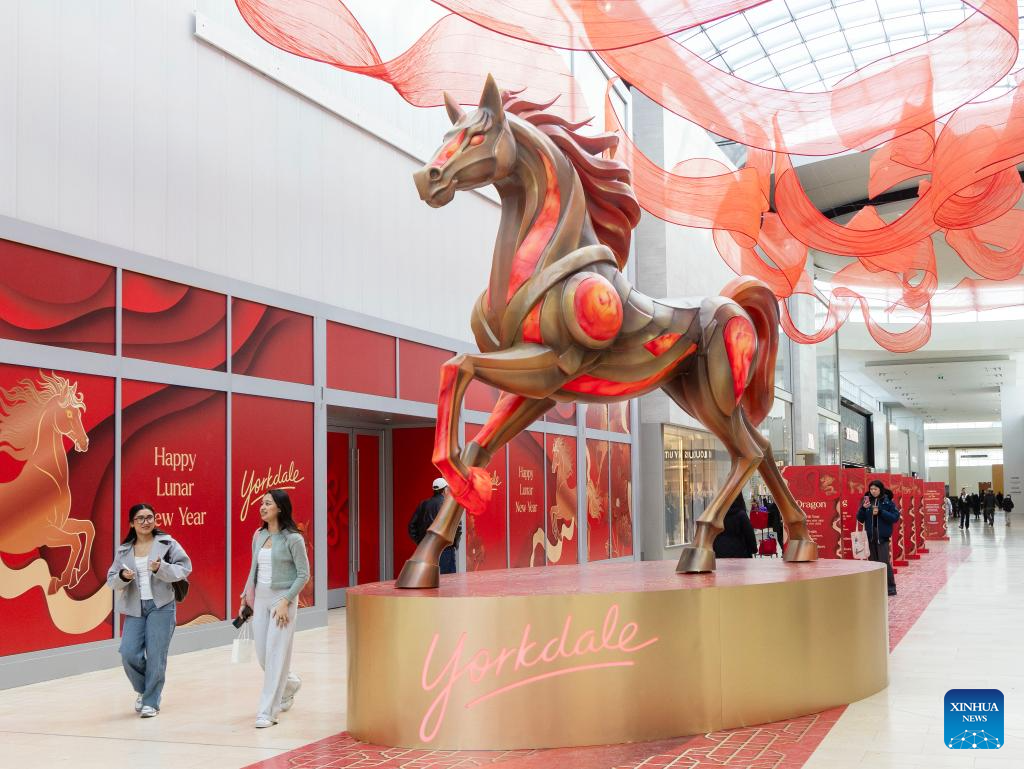 Major shopping centers in Toronto have recently unveiled new decorations to celebrate the upcoming Chinese New Year, which falls on Feb. 17, marking the beginning of the Year of the Horse. (Photo by Zou Zheng/Xinhua)