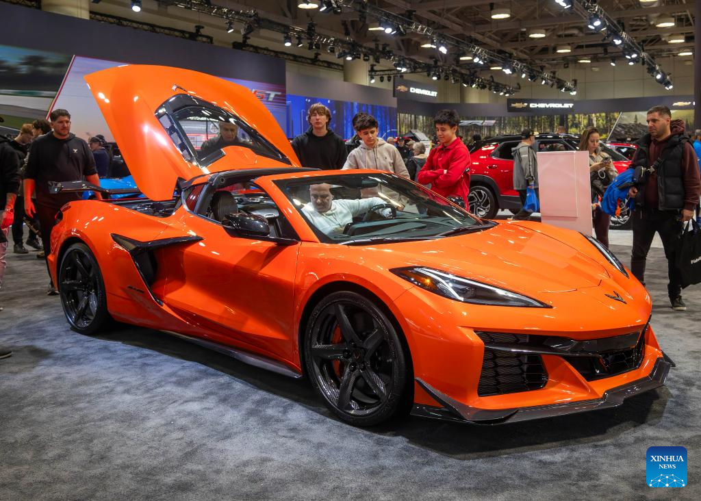 Visitors view a Chevrolet Corvette Z06 supercar at the 2026 Canadian International AutoShow in Toronto, Canada, Feb. 13, 2026.