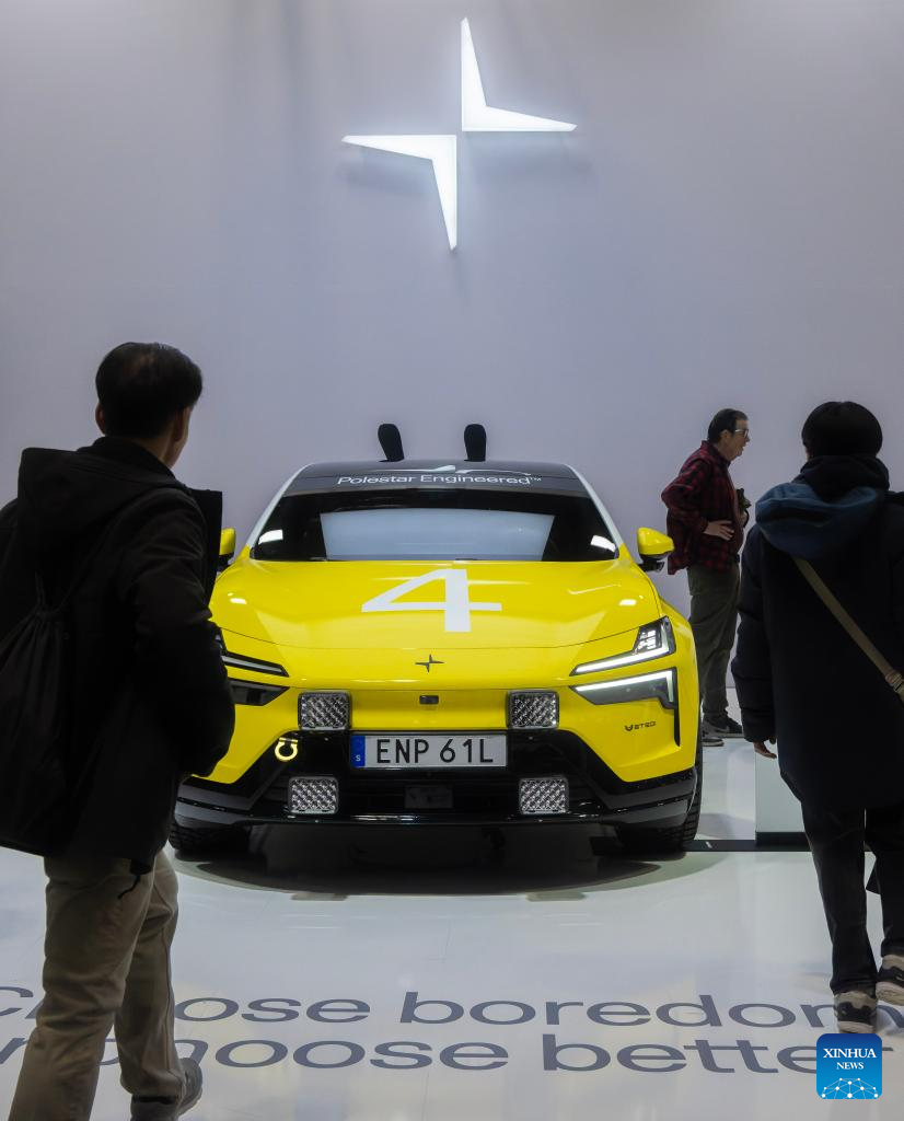 Visitors view a Polestar 4 electric vehicle at the 2026 Canadian International AutoShow in Toronto, Canada, Feb. 13, 2026.