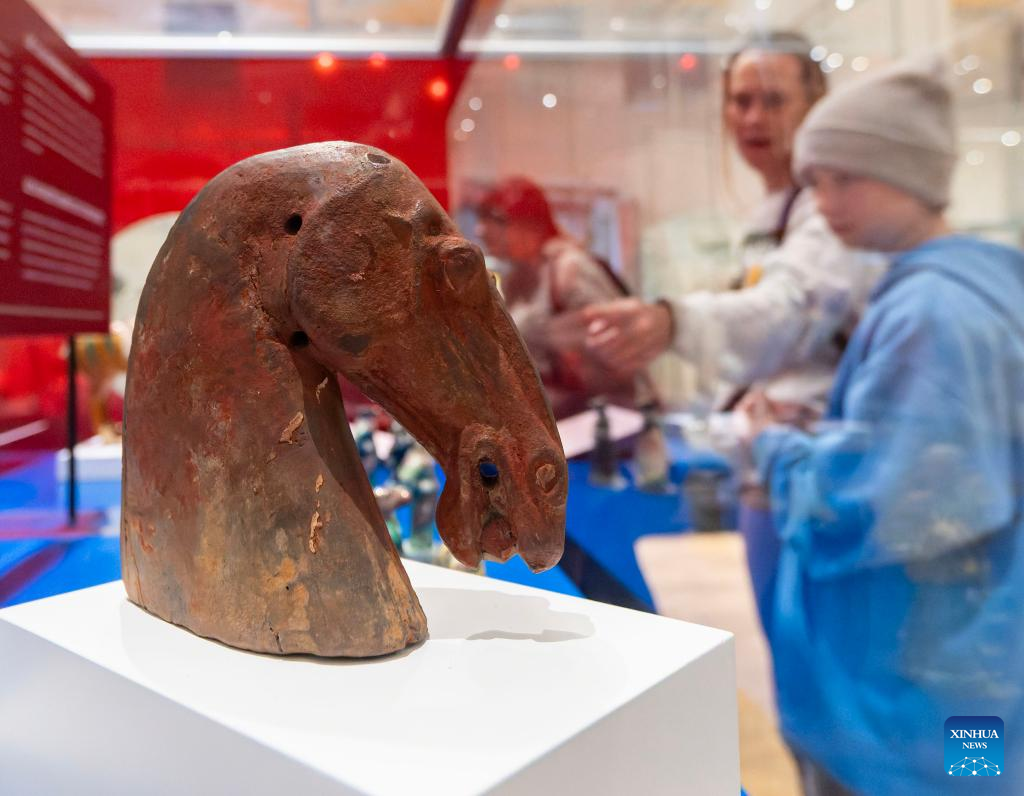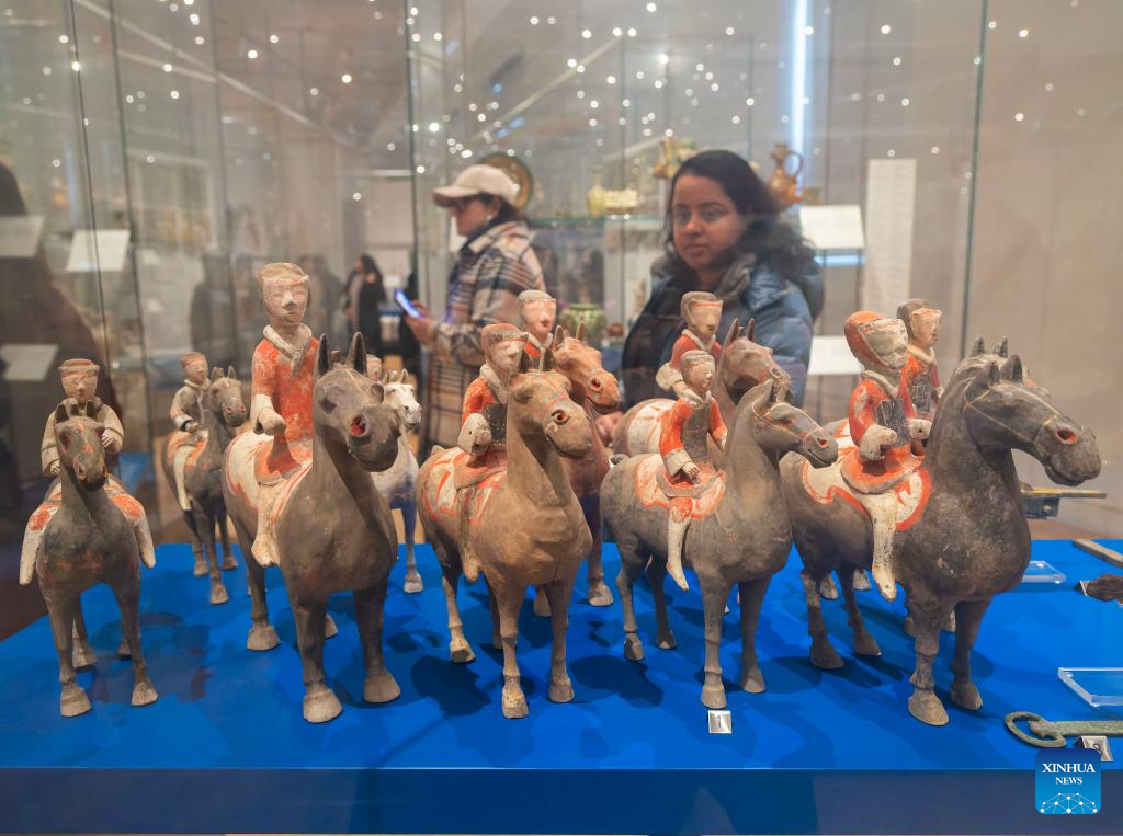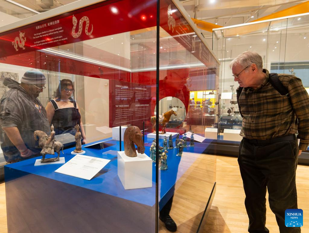 Visitors view an exhibit of the Year of the Horse from the Chinese Zodiac Case exhibition at the Royal Ontario Museum in Toronto, Canada, on Feb. 21, 2026. Featuring a rich collection of horse-themed objects and cultural artifacts, this annual Chinese zodiac exhibition opened here on Feb. 10 and will last until Jan. 31, 2027. (Photo by Zou Zheng/Xinhua)