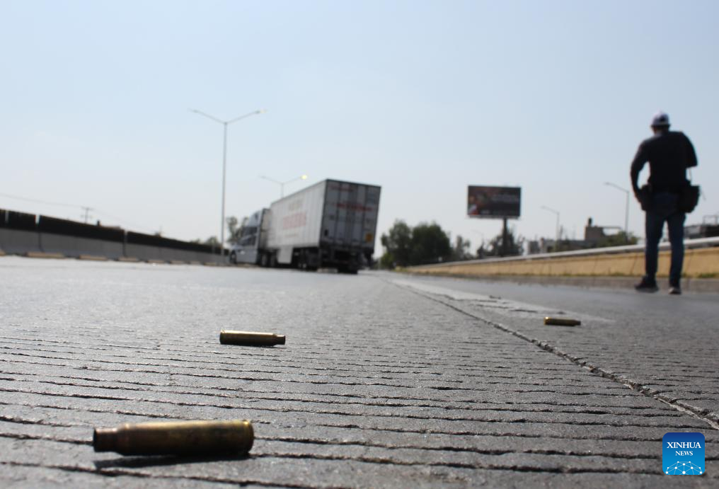 Shell casings are seen on a street in Guadalajara, capital of Jalisco state, Mexico, on Feb. 22, 2026. (Str/Xinhua)