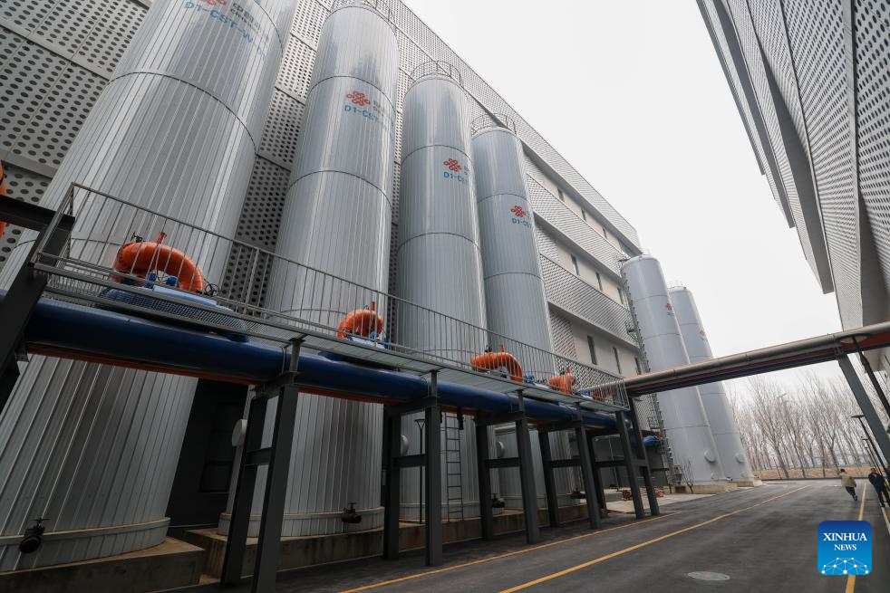 This photo taken on Feb. 26, 2026 shows cooling storage tanks in a digital technology industrial park of China Unicom at the Beijing-Tianjin Industrial New City Gaocun Data Intelligence Innovation Park in north China's Tianjin. The Beijing-Tianjin Industrial New City Gaocun Data Intelligence Innovation Park is a pivotal platform for fostering the digital economy in Tianjin's Wuqing District. The park boasts six high-level data centers in operation and is home to over 300 data-driven enterprises. It delivers efficient, low-latency, real-time computing services to support businesses across the Beijing-Tianjin-Hebei region in sectors including finance, digital creativity, rail transit, and healthcare. Its computing service capabilities maintain a leading position in the region. (Xinhua/Sun Fanyue)
