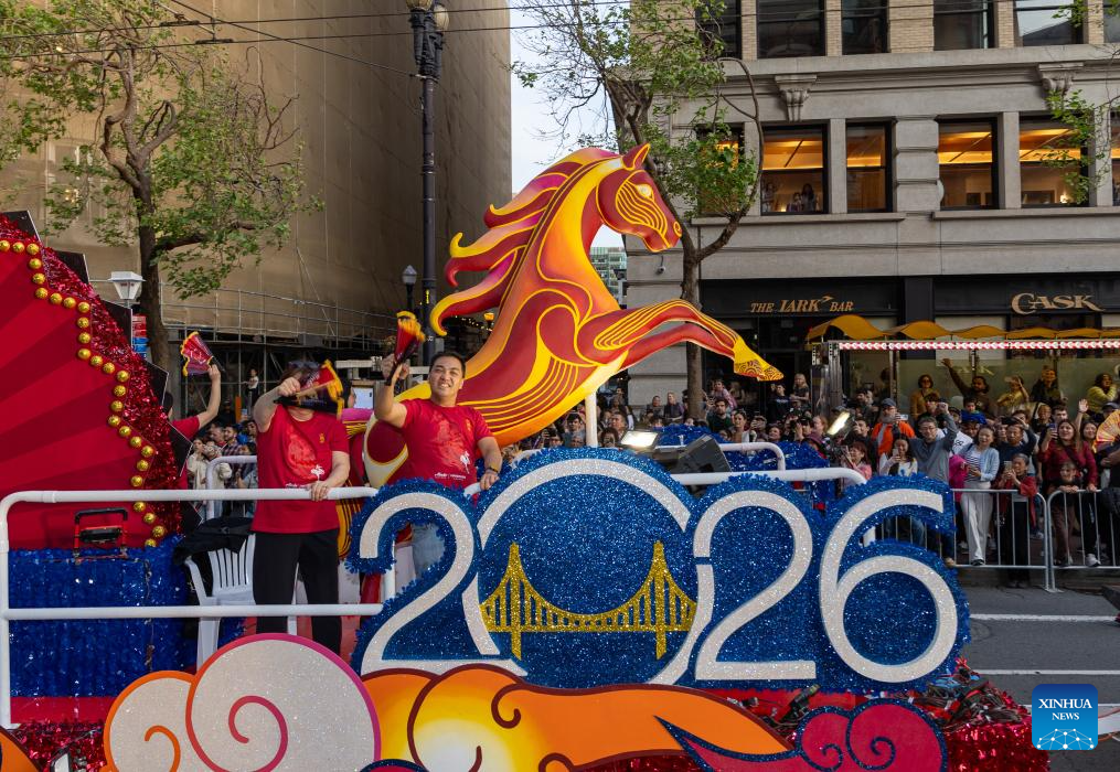 People attend a float parade celebrating the Chinese Lunar New Year in San Francisco, the United States, March 7, 2026. (Photo by Dong Xudong/Xinhua)