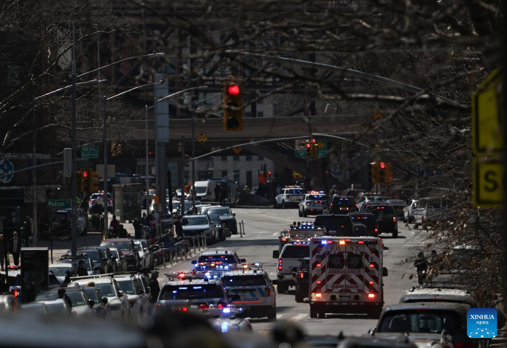 Police officers guard outside a New York court as the motorcade carrying Venezuelan President Nicolas Maduro and his wife Cilia Flores leaves the court in New York City, the United States, March 26, 2026. Venezuelan President Nicolas Maduro made his second appearance Thursday morning in a New York court after his forcible seizure by U.S. troops in a military raid in Caracas in early January. (Photo by Winston Zhou/Xinhua)