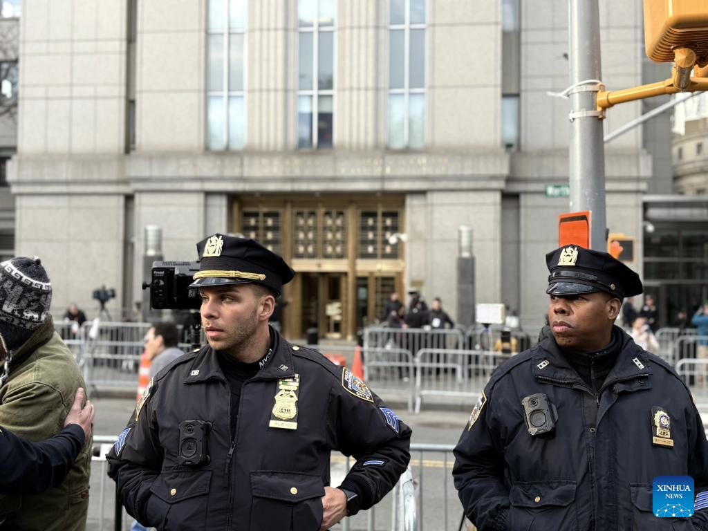 Police officers guard outside a federal courthouse in New York, the United States, March 26, 2026. Venezuelan President Nicolas Maduro made his second appearance Thursday morning in a New York court after his forcible seizure by U.S. troops in a military raid in Caracas early January. (Xinhua/Zhang Fengguo)
