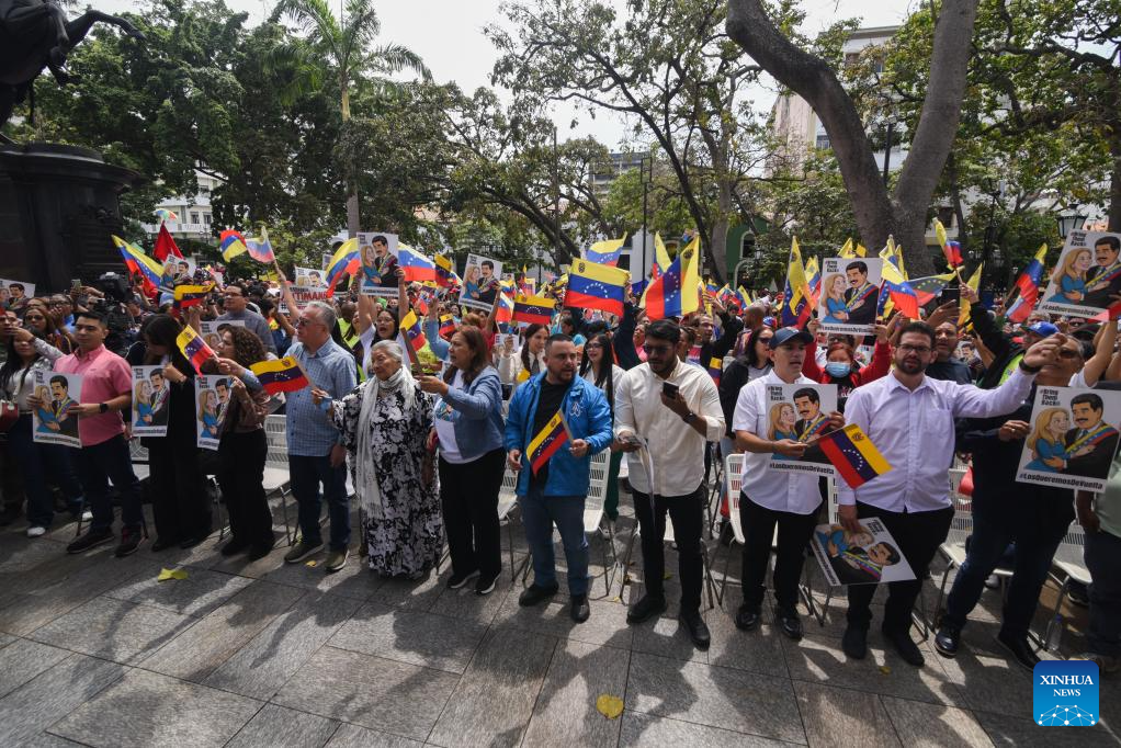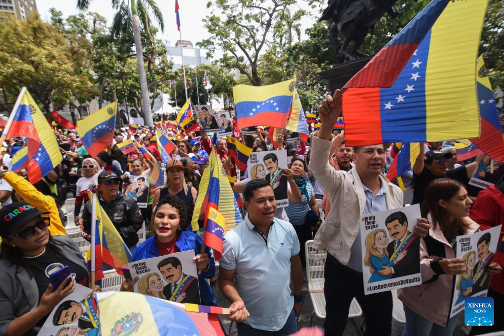 "We're here today standing with Nicholas Maduro and Cilia Flores," Jacoe Muldoon, a young protester, told Xinhua. "We think charges should be dismissed and that they should be freed."