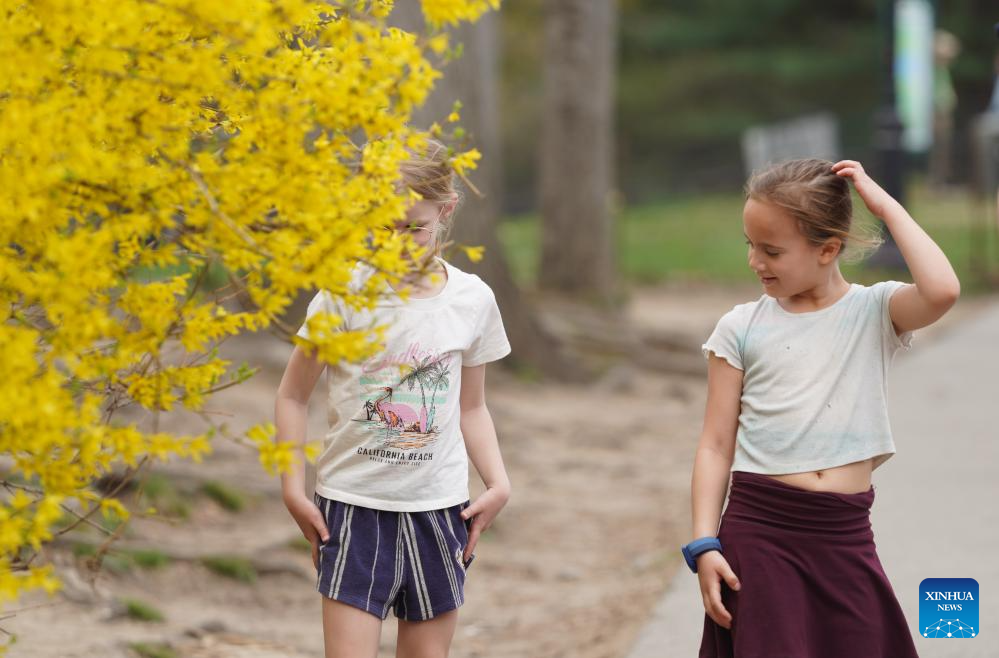 Children enjoy their time at the Central Park in New York, the United States, on April 1, 2026. (Xinhua/Zhang Fengguo)