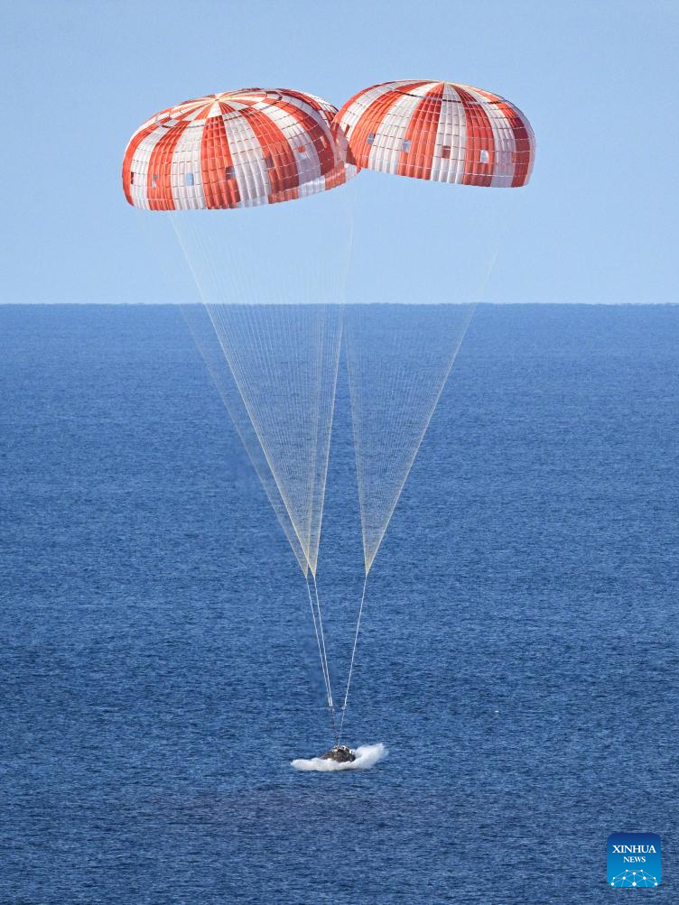 LOS ANGELES, April 10 (Xinhua) -- Four astronauts returned safely to Earth on Friday after completing a 10-day mission around the Moon, the U.S. National Aeronautics and Space Administration (NASA) said.