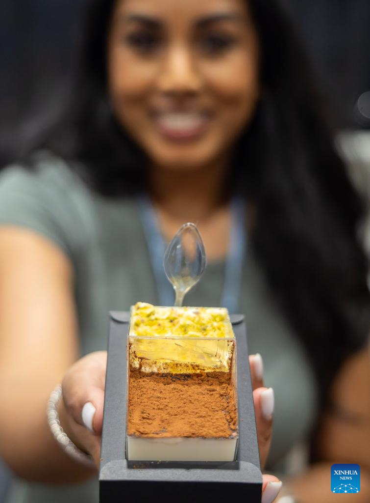 A vendor shows tiramisu at the T.O. Food & Drink Fest in Toronto, Canada, April 17, 2026.