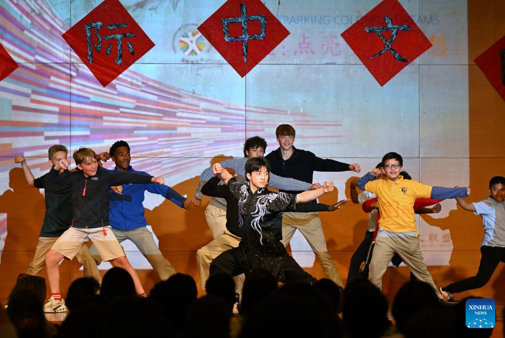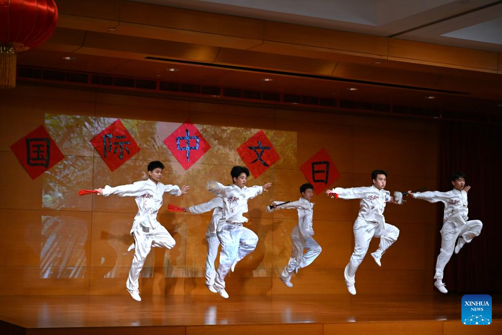 Actors perform Chinese martial arts in celebration of the International Chinese Language Day at the Chinese Embassy in Washington, D.C., the United States, April 21, 2026. (Xinhua/Li Rui)