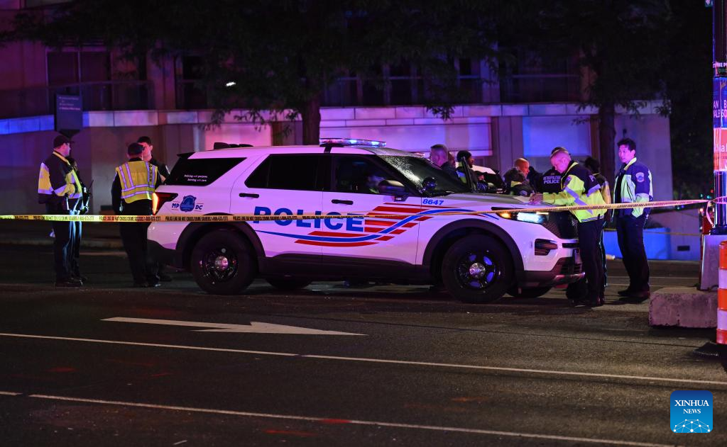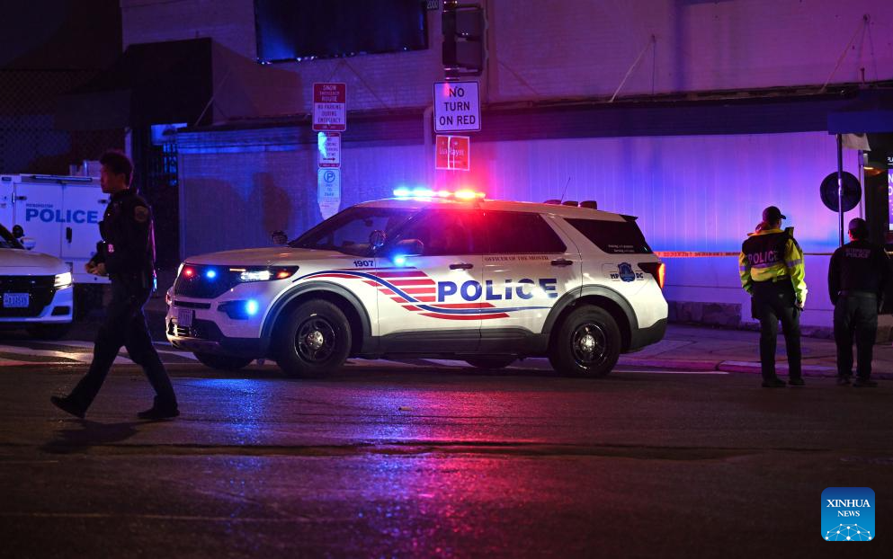 Police cars are seen near the Washington Hilton Hotel, where the White House Correspondents' Dinner was held, in Washington, D.C., the United States, April 25, 2026. In a joint press conference, Washington, D.C. Mayor Muriel Bowser said all guests at the dinner were safe, while U.S. Attorney for D.C. Jeanine Pirro said the suspect now faces charges including using a firearm during a crime of violence and assault on a federal officer with a dangerous weapon.