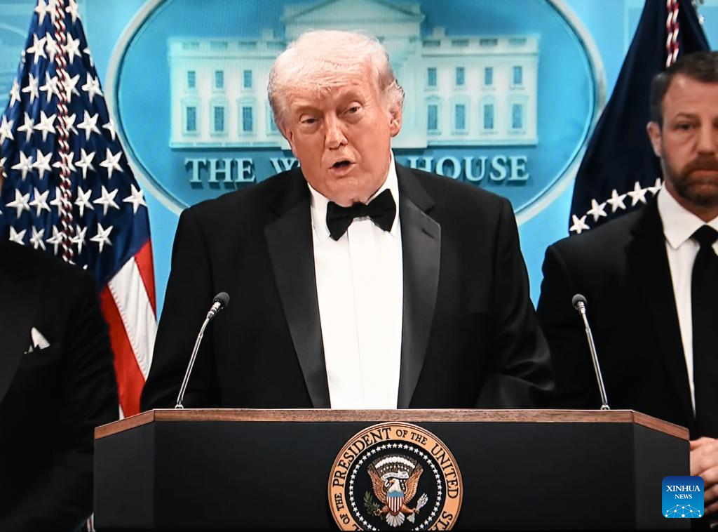 In response to a question about whether this shooting could have been linked to the war in Iran, Trump said, "I don't think so. But you never know." (Xinhua/Li Rui)