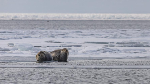 Seals seen on ice in Vladivostok, Russia