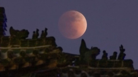 Moon seen during lunar eclipse over Yangon, Myanmar