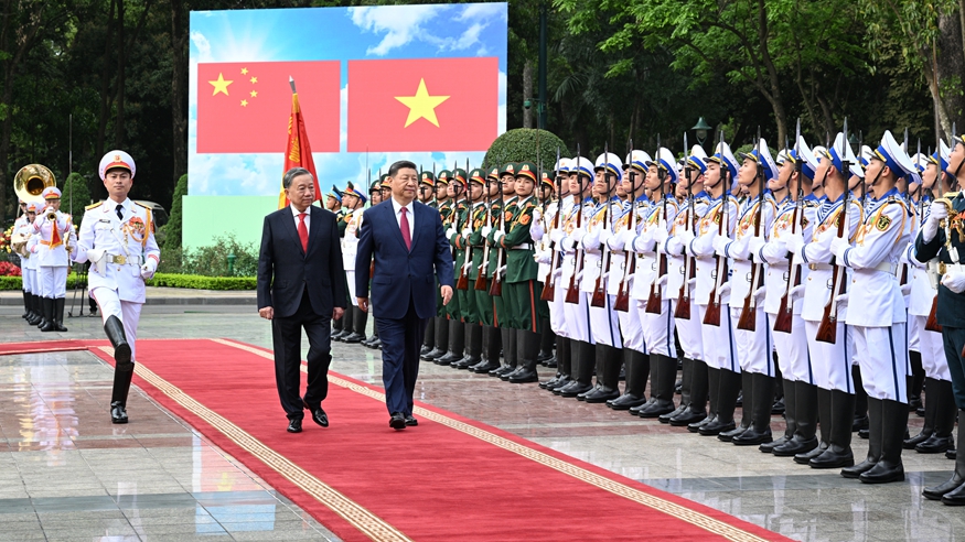 Xi attends welcome ceremony held by Vietnam's To Lam