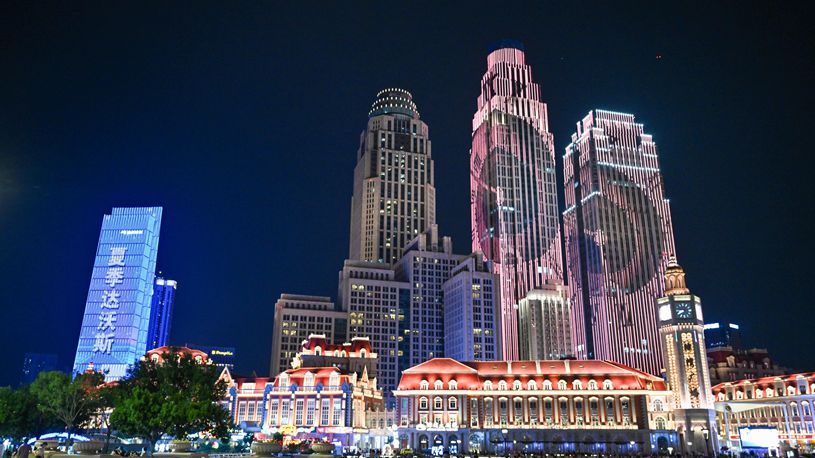 Tianjin's landmarks illuminated at night to welcome guests for 2025 Summer Davos forum