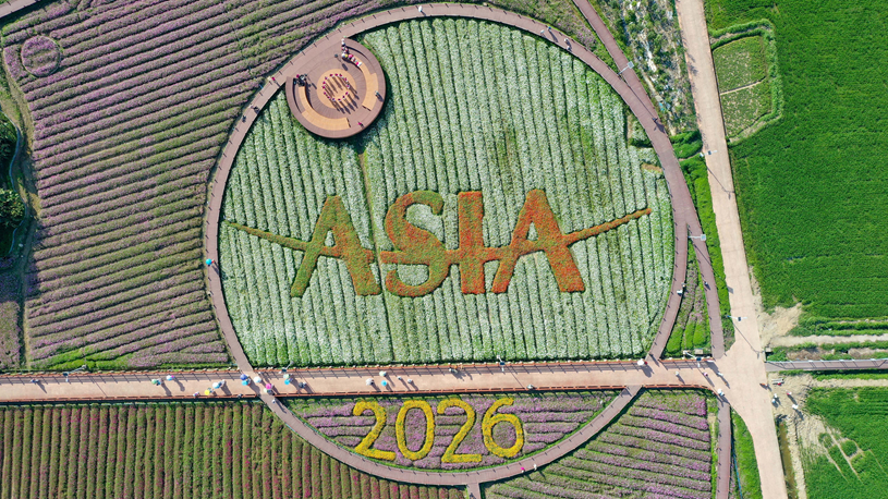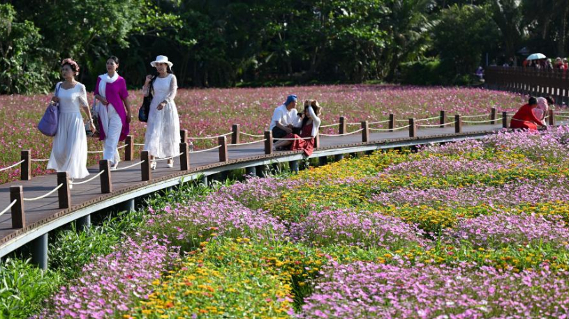 Tourists view flowers at Boao Town in China's Hainan