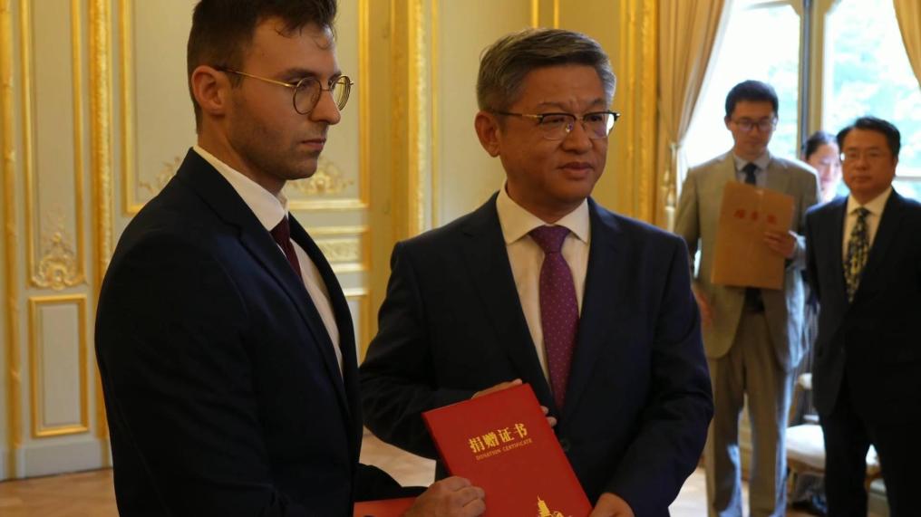 GLOBALink | Chinese Embassy in France holds ceremony for handover of historical Songhu Battle photos