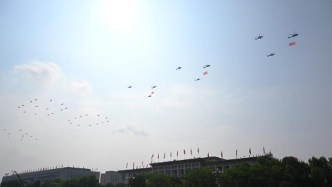 (V-Day) Carrier-based fighter jets fly over Tian'anmen Square in parade