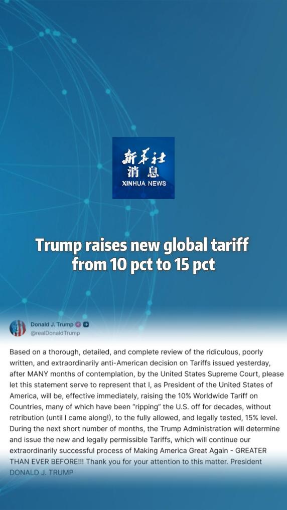 Xinhua News | Trump raises new global tariff from 10 pct to 15 pct